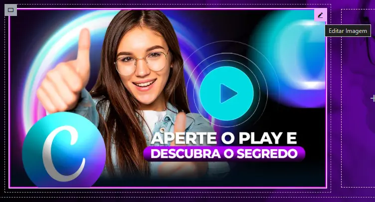 - Clique em qualquer elemento (título, imagem, botão) para editar